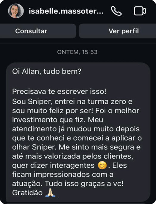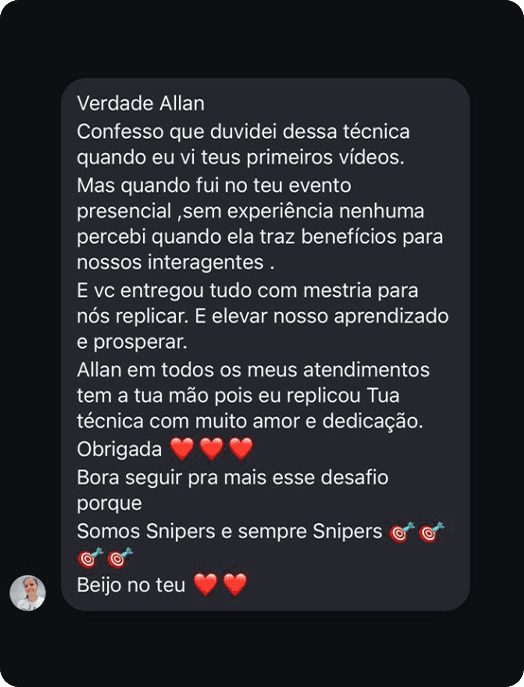Será revelado apenas para quem entrar no treinamento Liberação Essencial Sniper.